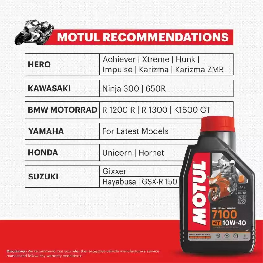 100% Synthetic with Ester technology 4-Stroke engine oil formulated to meet the newest in motorcycle manufacturer specifications in terms of JASO and API ; Vehicle Model Name: Pulsar 220 DTS-i, Ninja, Karizma ZMR, Karizma, Duke 390