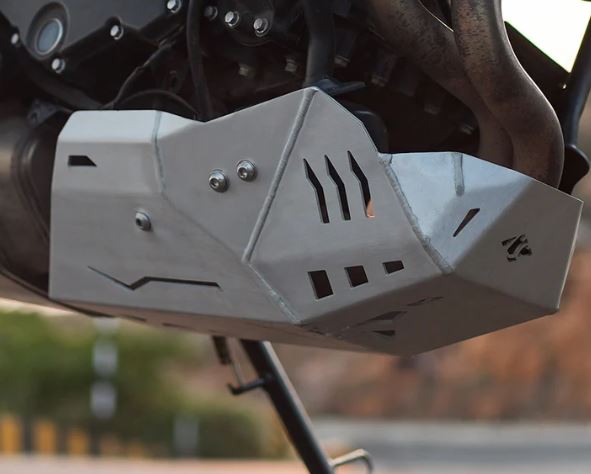 The Kawasaki Versys 650 Vambrace Bash Plate Silver, available at Legundary Custom Built, is designed to offer superior protection to the engine and lower frame of your adventure motorcycle. Crafted from high-quality aluminum, this bash plate provides excellent durability while keeping the weight minimal. Its precision-fit design ensures complete coverage against rocks, debris, and rough terrains, making it an essential upgrade for off-road and touring enthusiasts. The sleek silver finish not only adds a rugged aesthetic to your bike but also enhances resistance against corrosion and wear. With easy installation and a sturdy mounting system, this bash plate is built to withstand the toughest rides while ensuring your bike remains safeguarded.