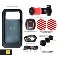 - Route95 Twist &Go Handle Bar Phone Mount is 360 Degree Phone Mount with Waterproof Case with Wireless charging and Universal Adapter.