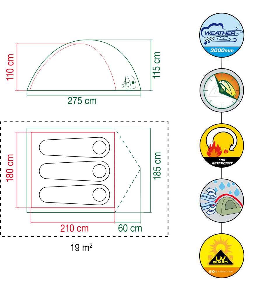 • Ground Sheet: PE welded, fully integrated