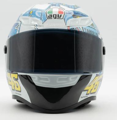Meticulously crafted "AGV | Rossi Winter Test 2017" replica with a unique snow-covered village design, ideal for collectors and display.