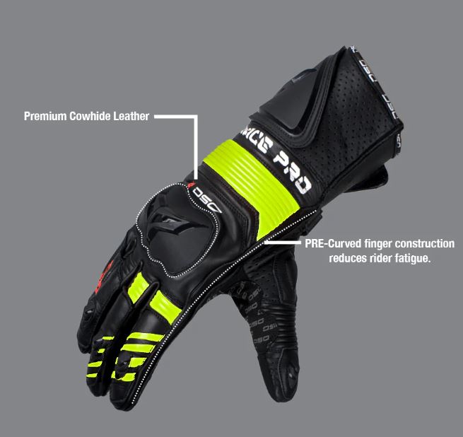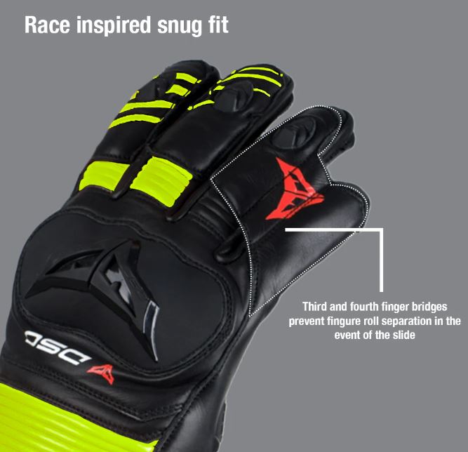 The DSG RacePro Sport Riding Gloves are India’s first and only track-ready gloves, built to deliver high performance, premium protection, and unparalleled comfort. Designed for riders who push limits, these gloves feature a race-inspired snug fit that enhances feedback and control. Its pre-curved fingers reduce fatigue while ensuring a natural grip on the handlebars.