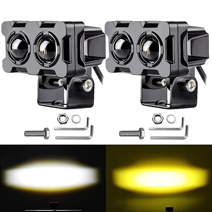 Atoray 2 Led LED Fog Lights, Motorcycle Auxiliary Spot Lights 40W White and Amber Projector Light for All Motorbike Cars SUV ATV (Pack 2)