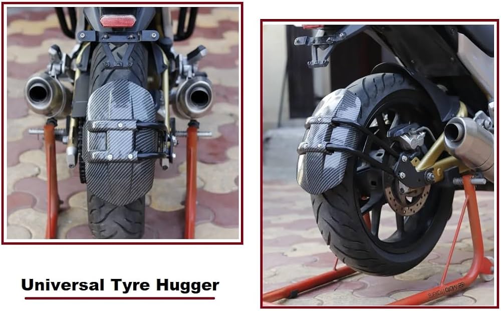 The mudguard with the combination of the vehicle fender to protect the vehicle, passengers, other vehicles, and pedestrians from mud It is for All Bikes all the fitments are made of pure alloys so no scratch no removable paint the product is made up of proper carbon fibre
