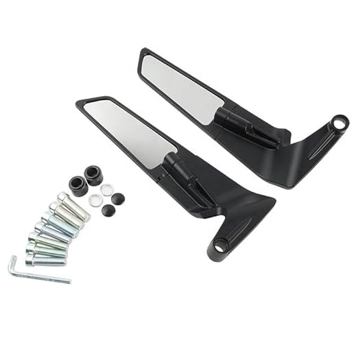 yoke nut fitting Wing fin mirrors give your bike an aesthetic appeal, and enhance the sporty element of your bike from all the angles! Sleek, compact, and sporty mirrors This rotating side mirror has the axis of up and down rotation, free to switch the two modes of the rear view mirror and the fax. Unique Custom Design Of Superb Quality, Crafted From CNC aluminum.l Which Is Very Strong And Corrosion Resistant.