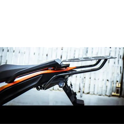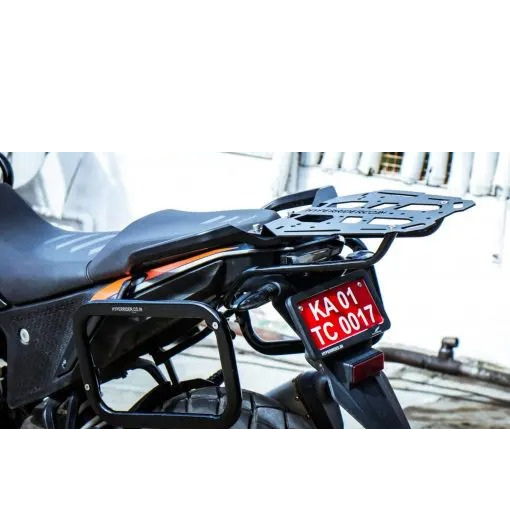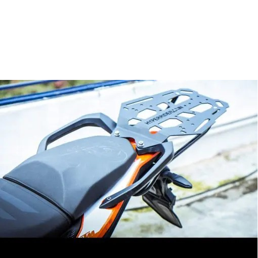 We bring you the most CLASSY and still cheaper than the rest of the Top Rack type 2 for KTM Adventure 250 & 390 which can carry up to 25kgs. The top rack type 2 comes with a 5mm plate for a more premium finish. Top Rack Type 2 weighs 3 kgs only. The top rack is made MS made with a sand bending technique it comes with universal fitment for any top box.