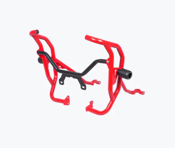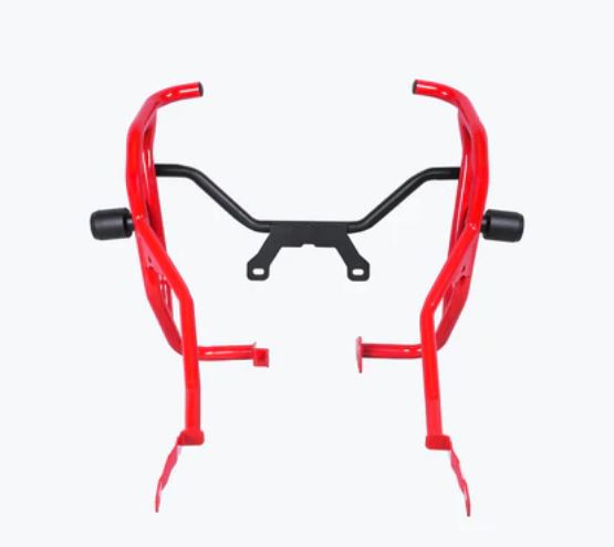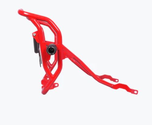 The Legundary Hero Xpulse 210 Xplorer Crash Guard for the Hero X pulse 210  available at Legundary Custom Built is designed to provide robust protection for your motorcycle during off-road adventures and daily commutes. Crafted from high-quality mild steel this crash guard is engineered to absorb and distribute impact forces, safeguarding critical components like the engine radiator and fuel tank in the event of a fall or collision. The guard features a precision engineered design that ensures a perfect fit for the Hero Xpulse210 allowing for easy installation without the need for modifications. Its powder coated finish in Black Red or White not only adds a stylish touch to your bike but also offers resistance against corrosion and wear.