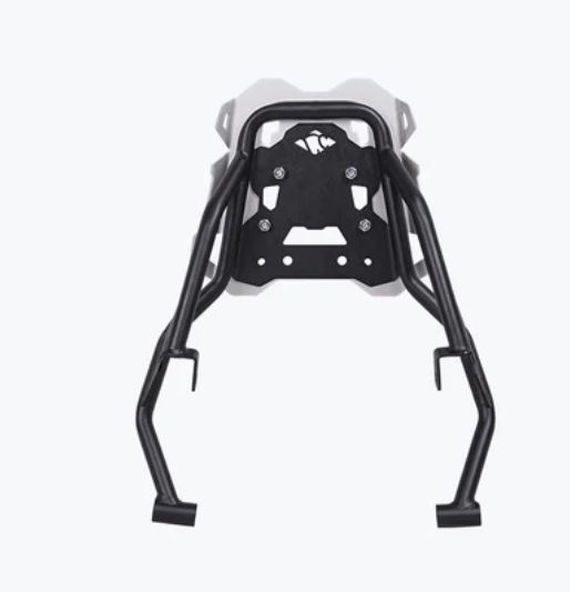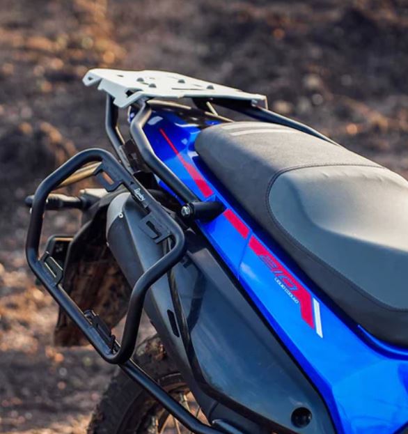 The Legundary Hero Xpulse 210 Gopher Luggage Carrier Black and Silver available at Legundary Custom Built is designed to enhance your Xpulse 210 touring capabilities by providing a sturdy platform for carrying luggage. Crafted from a combination of mild steel and aluminium, this carrier offers a balance of strength and lightweight construction, ensuring durability without compromising the X pulse 210 performance. The black and silver finish adds a sleek aesthetic that complements the Xpulse210 design. Its precision-engineered fitment ensures easy installation, allowing riders to securely mount various types of luggage including top boxes and duffel bags making it an ideal accessory for long-distance travel and daily commuting.