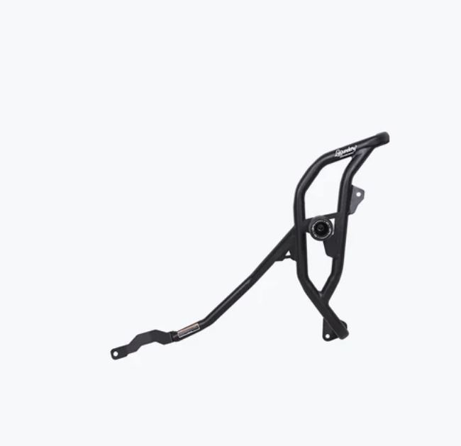 The Legundary Hero Xpulse 210 Xplorer Crash Guard for the Hero X pulse 210 available at Legundary Custom Built is designed to provide robust protection for your motorcycle during off-road adventures and daily commutes. Crafted from high-quality mild steel this crash guard is engineered to absorb and distribute impact forces, safeguarding critical components like the engine radiator and fuel tank in the event of a fall or collision. The guard features a precision engineered design that ensures a perfect fit for the Hero Xpulse210 allowing for easy installation without the need for modifications. Its powder coated finish in Black Red or White not only adds a stylish touch to your bike but also offers resistance against corrosion and wear.
