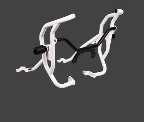 The Legundary Hero Xpulse 210 Xplorer Crash Guard for the Hero X pulse 210  available at Legundary Custom Built is designed to provide robust protection for your motorcycle during off-road adventures and daily commutes. Crafted from high-quality mild steel this crash guard is engineered to absorb and distribute impact forces, safeguarding critical components like the engine radiator and fuel tank in the event of a fall or collision. The guard features a precision engineered design that ensures a perfect fit for the Hero Xpulse210 allowing for easy installation without the need for modifications. Its powder coated finish in Black Red or White not only adds a stylish touch to your bike but also offers resistance against corrosion and wear.