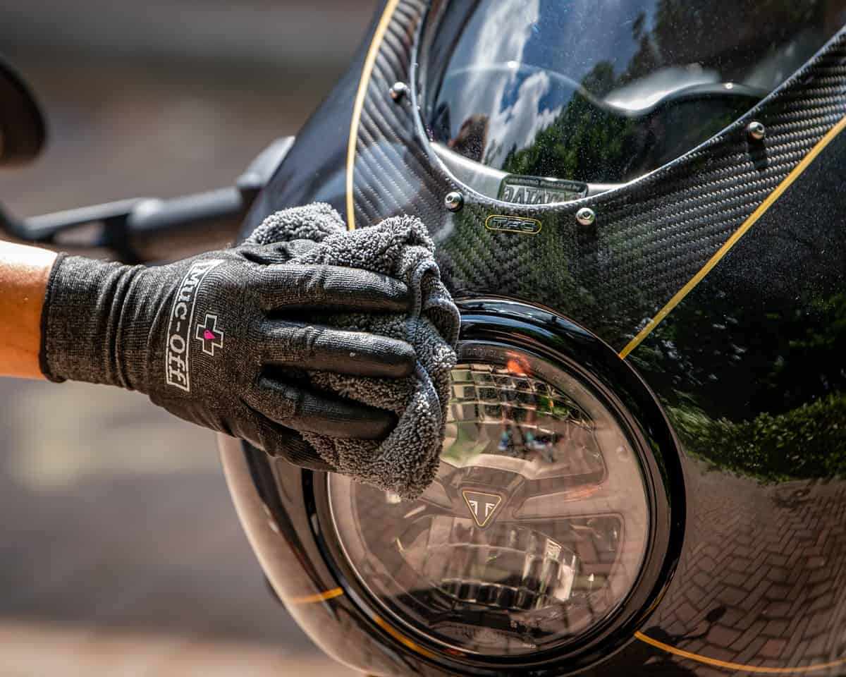 Muc-Off Speed Polish is the ultimate all in one polish and wax to keep your steed shining with a glossy finish. It’s a quick and easy to use all in one motorcycle polish and wax. It contains pure Carnauba (the hardest naturally occurring wax) for durability and Beeswax to ensure a deep, glossy shine on your entire bike. It’s been specifically formulated to leave a hydrophobic water resistant barrier, on all of your motorcycle’s bodywork and metal parts. It’s also got a fresh bubblegum scent to keep your ride not only looking like new, but smelling rad too.