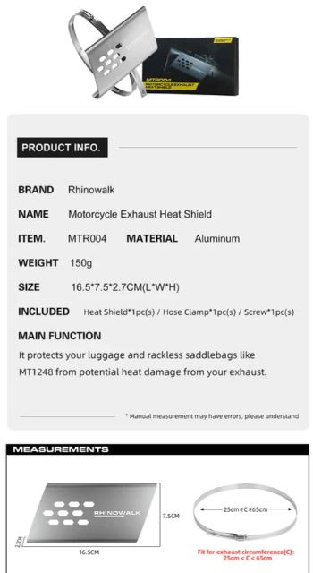 RHINOWALK - MTR004 EXHAUST HEAT SHIELD - MOTOR CYC ACC.