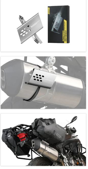 For motorcycles without racks and heat shield, rackless saddlebags like Rhinowalk MT1428 series need to keep a safe distance from the exhaust pipe. With exhaust heat shield, you are free of worring.