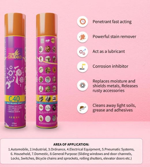 1. Effective Rust Removal: C40 Rust remover sprays are specifically formulated to dissolve and remove rust, making the process of rust removal more efficient and less time-consuming.