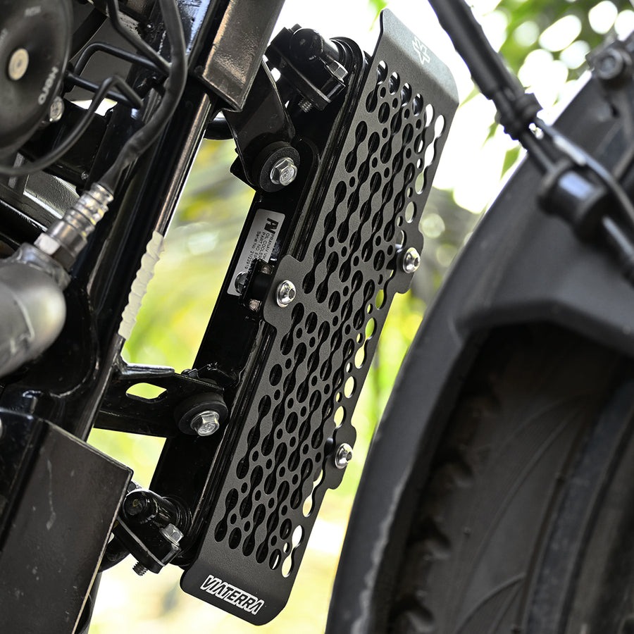 The ViaTerra Radiator Guard for the HERO X PULSE 2V is a must-have accessory designed to protect the oil cooler fins from damage caused by everyday elements like pressure washing or flying debris during off-road adventures. The guard is specially crafted to ensure that it does not impede the flow of air, which is crucial for keeping the oil cool. This makes the radiator guard an effective solution for maintaining the longevity and performance of your motorcycle.