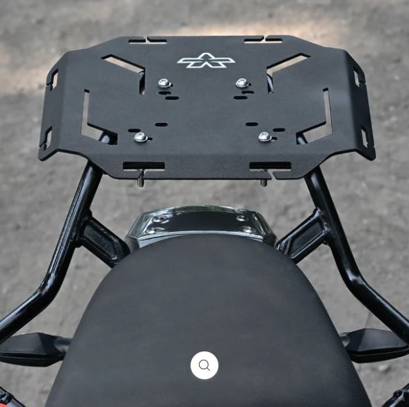 Expand the luggage-carrying capacity of your RE Himalayan (2016-20) with our quick mount rear rack from ViaTerra. It gives you the option to mount your luggage, using straps or bungees and provides more space for bigger bags. There are dedicated quick release slots available to pass-through the mounting straps of the ViaTerra POD Expanders or Drybag 8L for easier usage. It also has angled edges that improves bending resistance thereby preventing plate flex under loading conditions.