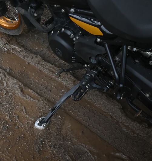 The Royal Enfield Himalayan 450 sidestand shoe enhances stability while improving the lean angle, especially on soft surfaces where your bike might otherwise tip over. Meticulously designed and crafted using high-quality materials, the shoe distributes the bike's weight more effectively over a wider base, preventing it from sinking into the ground. This feature is crucial for riders exploring new trails or touring across diverse surfaces.