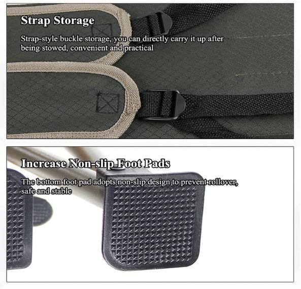 - Foldable Picnic Chair: With this convenient foldable fabric lounge chair, the table can go anywhere. Designed for al fresco dining and events. The bottom pad adopts anti-slip design to prevent rollover, safe and stable.