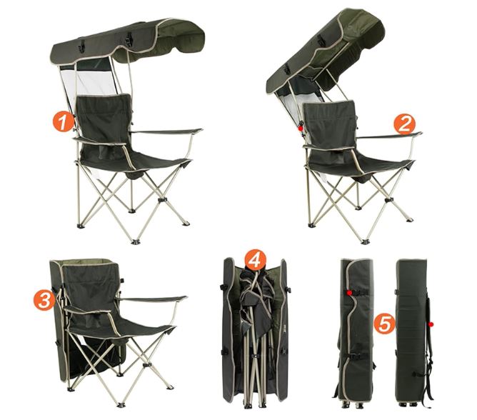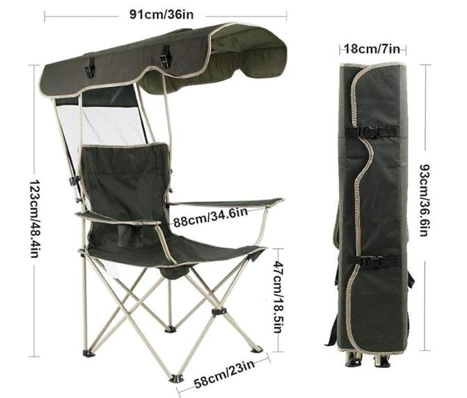 - Portable outdoor folding chair with awning, foldable, takes up little space, can block part of the sun outdoors, and provide a cool place for your rest and use.