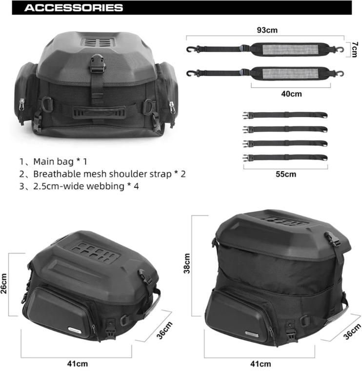 Large Storage Space: The normal use capacity of the main bag is about 23L, and can be expanded to 35L. When fully expanded, it can fit a full-face helmet easily and worry-free with lockable zipper.